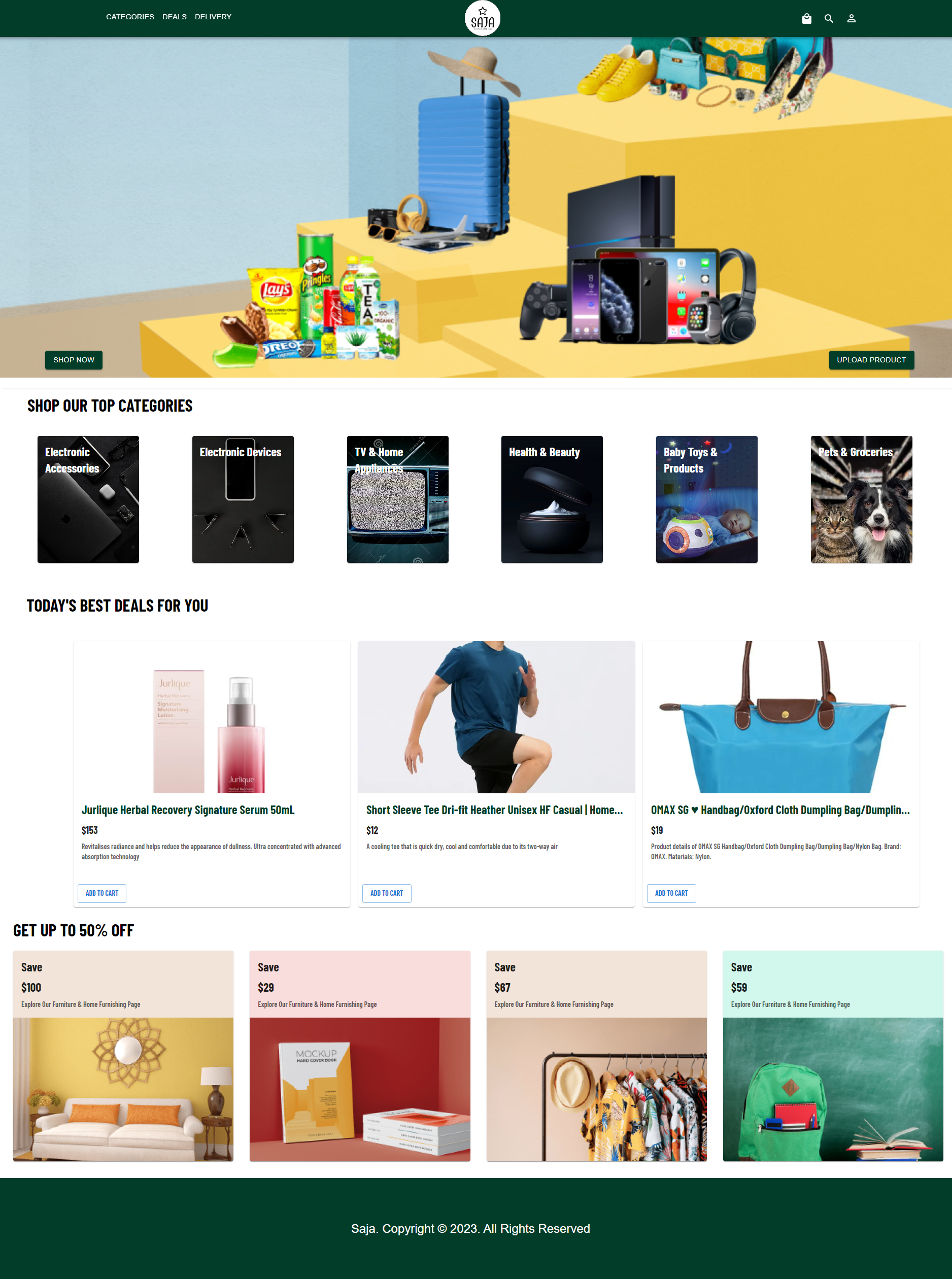 In a group of a total of 4 members, Saja is an E-Commerce platform. Built with React and Material UI, it employs a Node.js backend with a PostgreSQL database using Sequelize as an ORM. Authentication is secured via Auth0 and JWT tokens. Image storage is handled by Firebase. Saja facilitates buying and selling using Stripe and enables direct seller-buyer communication through Socket.io. Working closely with team members on Git and GitHub greatly improved our skills on version control.