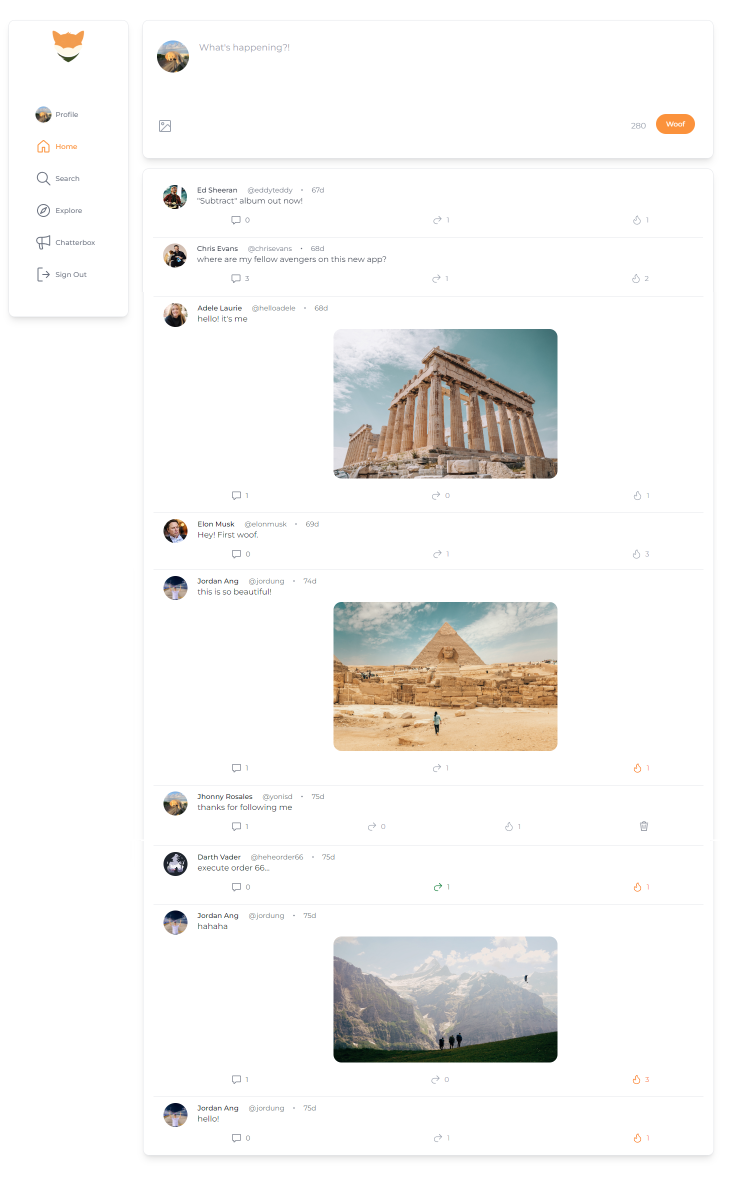 Created in a collaborative pair project, Woofly is a Social Media Twitter-like. Implemented React, React Router, React Context and Tailwind CSS for seamless user experience. Integrated Firebase for real-time data storage and authentication. This project enhanced teamwork using version control with Git and GitHub.